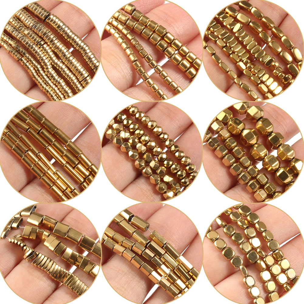 Название: Позолоченные цветные гематитовые бусины из натурального камня, Нерегулярные геометрические бусины для самостоятельного изготовления ювелирных изделий, разные стили