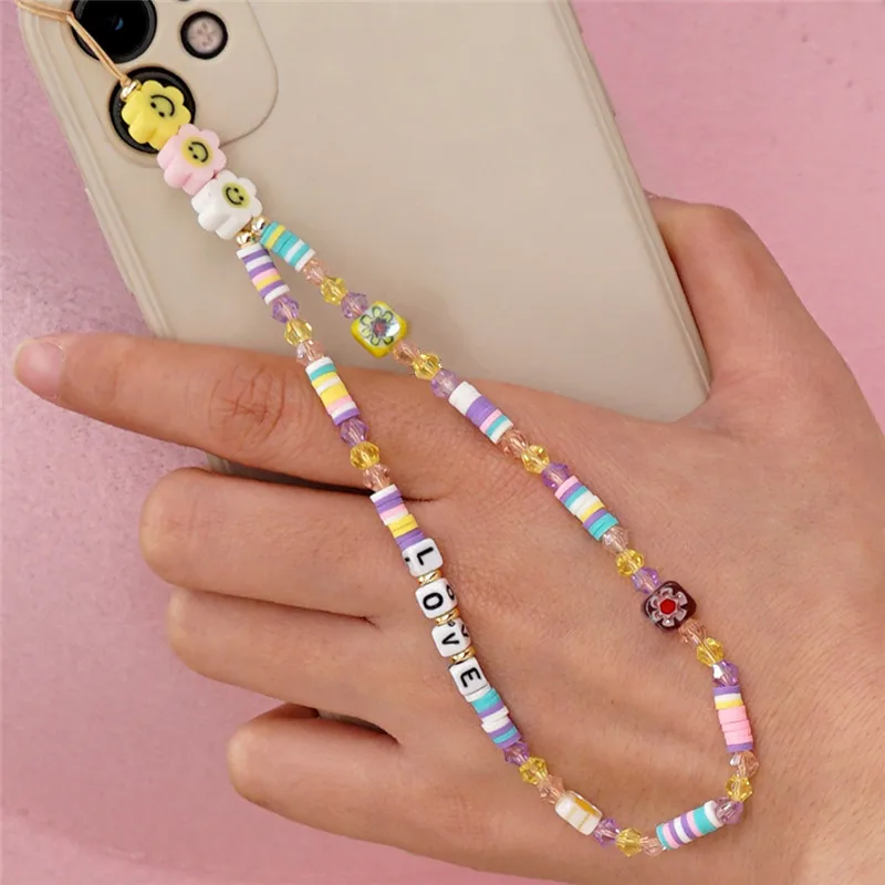 Модный ремешок для телефона из акриловой глины с жемчужными бусинам...