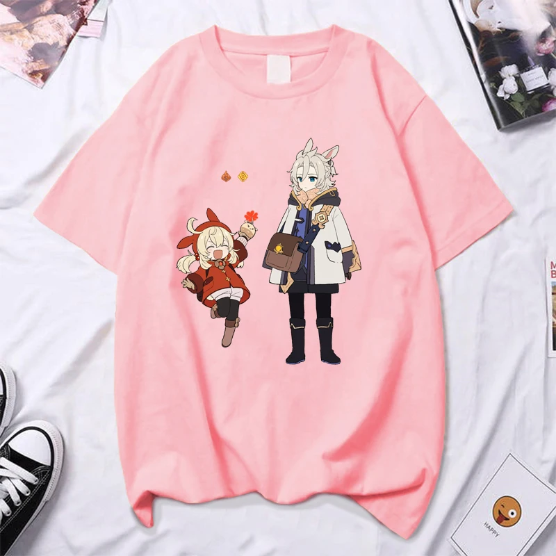 Горячая игра Genshin Impact футболки Kawaii подростковая одежда мод...