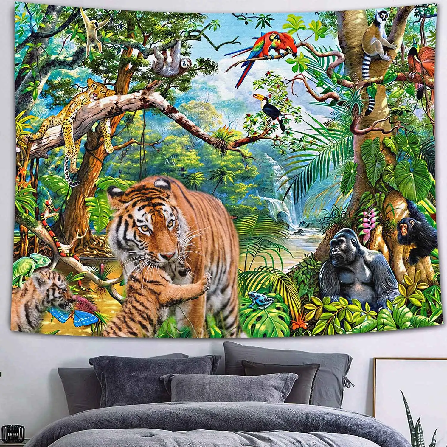 Simsant лес диких гобелен с животными психоделический Лев лес стене висит тропические растения природного ландшафта банкет для общежития