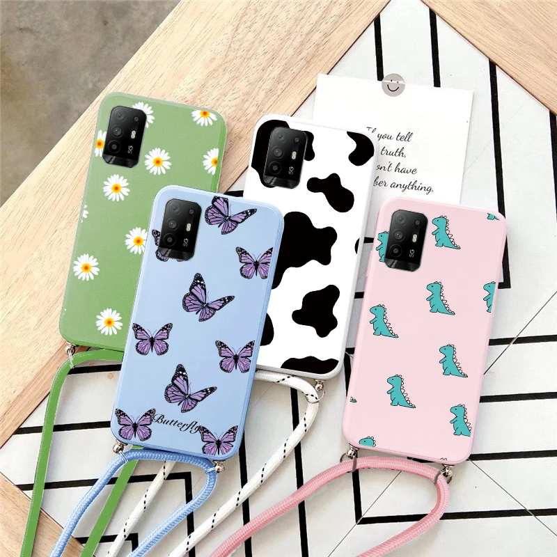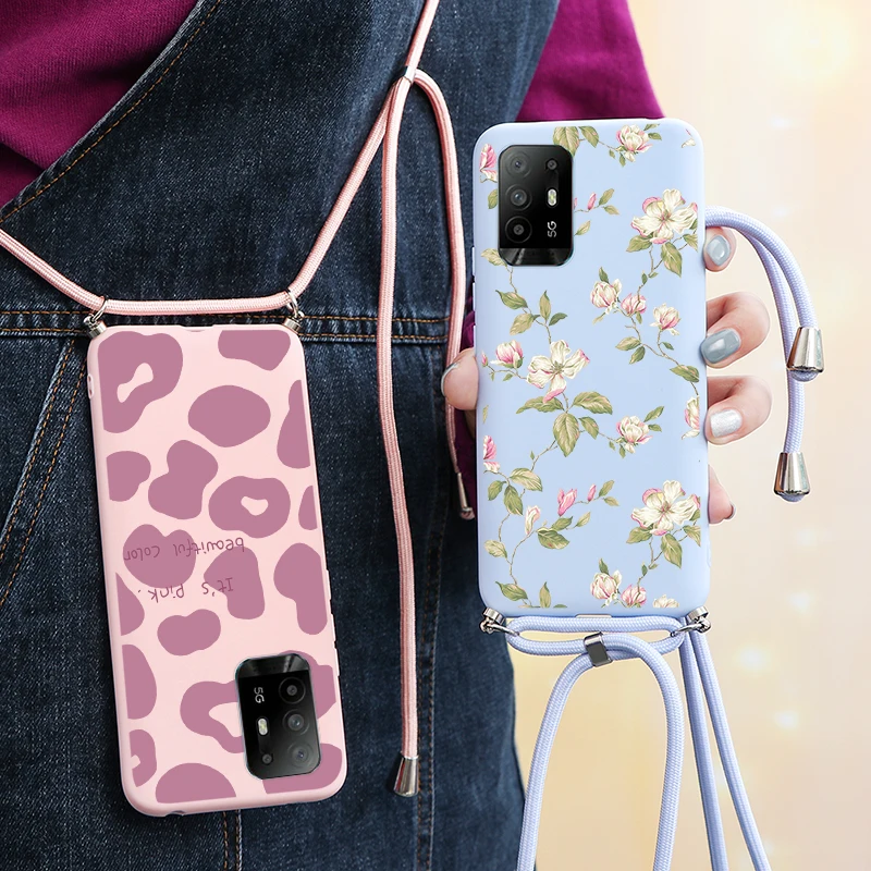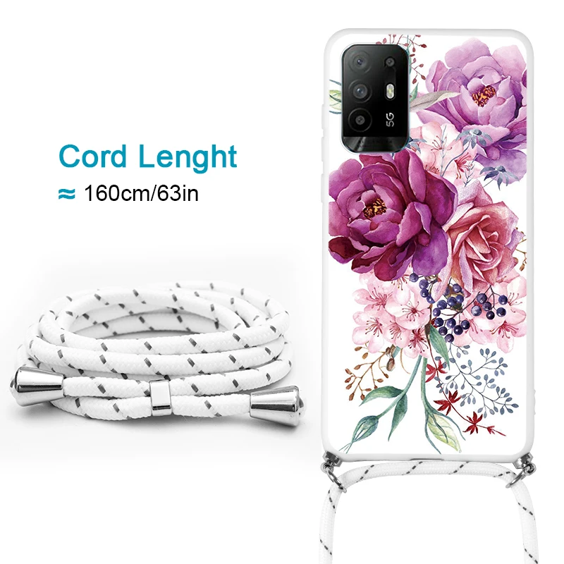 Модное ожерелье чехол для телефона для OPPO A95 A94 F19 Pro Plus Reno5 Z 5G Fundas ремешки с петлей шнур цепи Кроссбоди задняя крышка