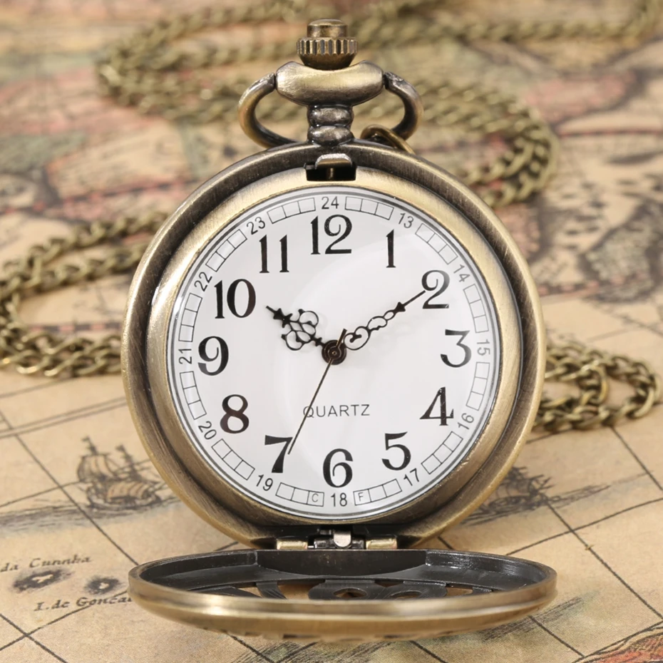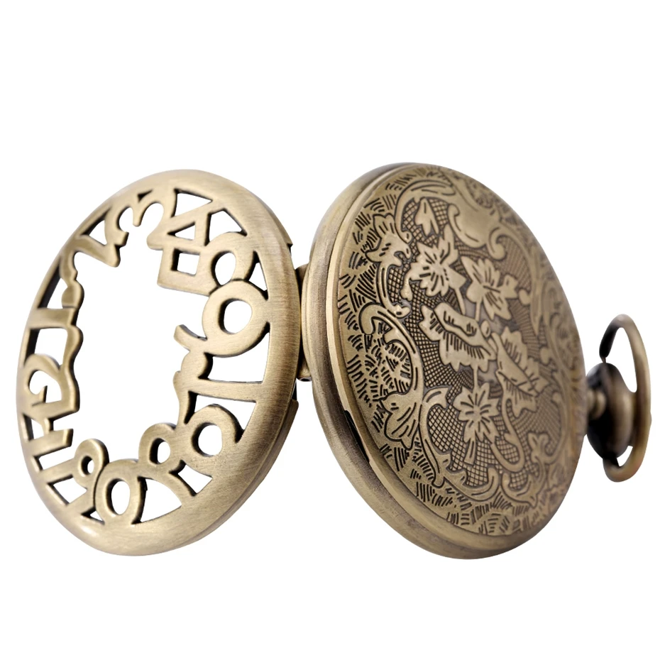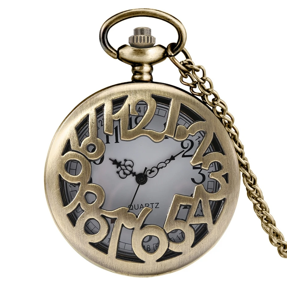 Креативный дизайн ожерелье полый цифровой кулон белый Ретро Бронзовый неровный арабский циферблат кварцевые карманные часы цепочка для часов