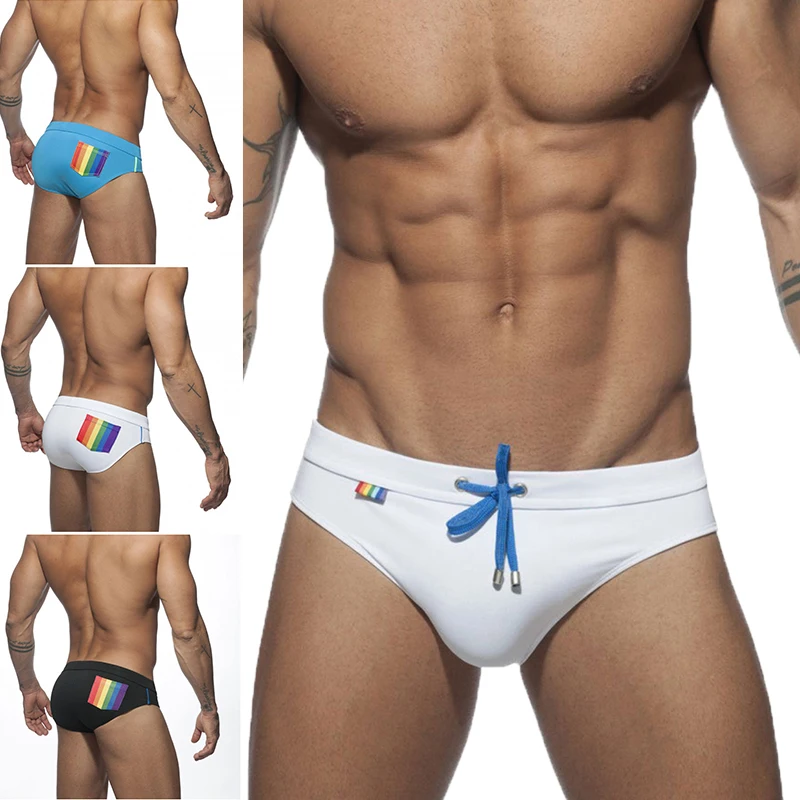 Мужской купальный костюм радужной расцветки, пикантная пляжная одежда с принтом, шорты с заниженной талией для плавания, костюм для геев и мужчин