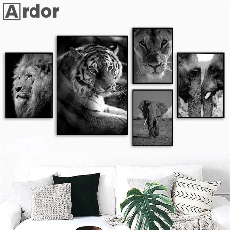 Современный настенный плакат с Львом, тигром, леопардом, слонами, д...