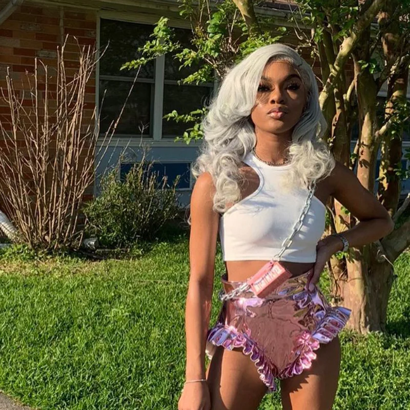 Женские блестящие шорты с металлическим отливом, летние однотонные шорты с высокой талией и оборками