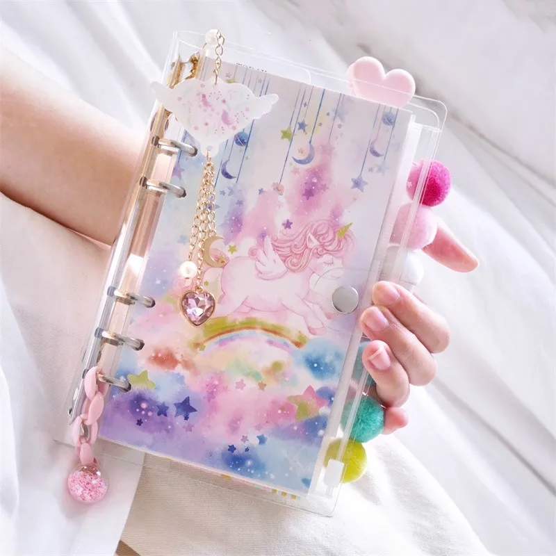 A5 A6 для девочек с узором в виде записная книжка С ПЕРЕПЛЕТОМ с листьев Единорог океан вишня в цвету серии спираль путешественника Тетрадь 6 отверстий милые съемные дневник деловой Подарочный костюм из нержавеющей стали