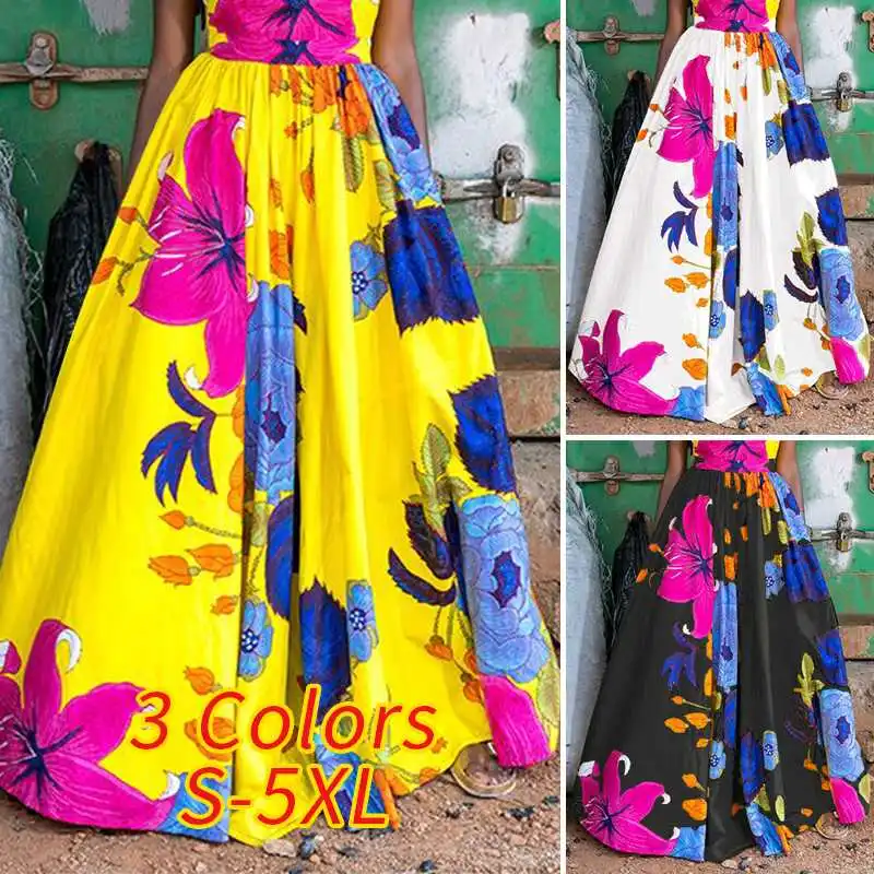 Женская плиссированная юбка, длинная винтажная повседневная юбка макси с цветочным принтом, с эластичной талией, уличная одежда свободного кроя, лето 2021