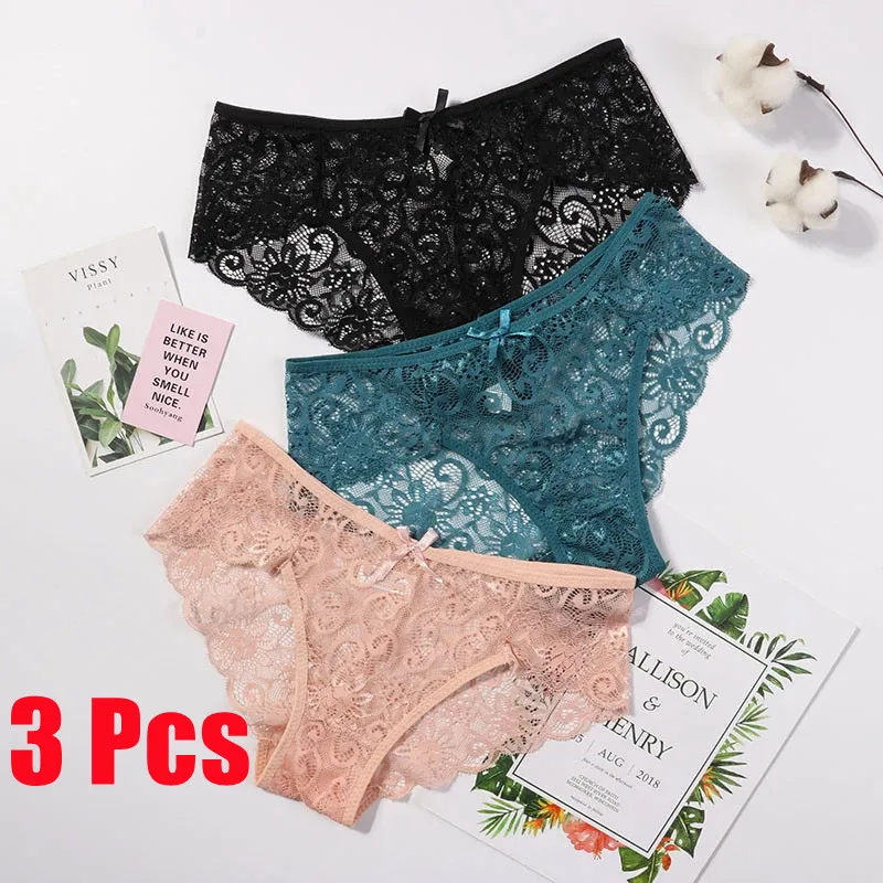 3 шт., женские кружевные прозрачные трусики-стринги с низкой посадкой