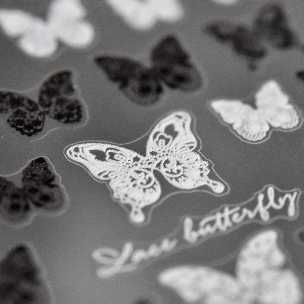 5D черно-белые кружевные наклейки для ногтей с бабочками, самоклеющ...