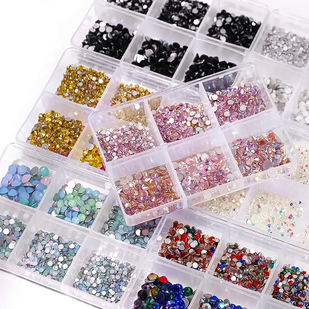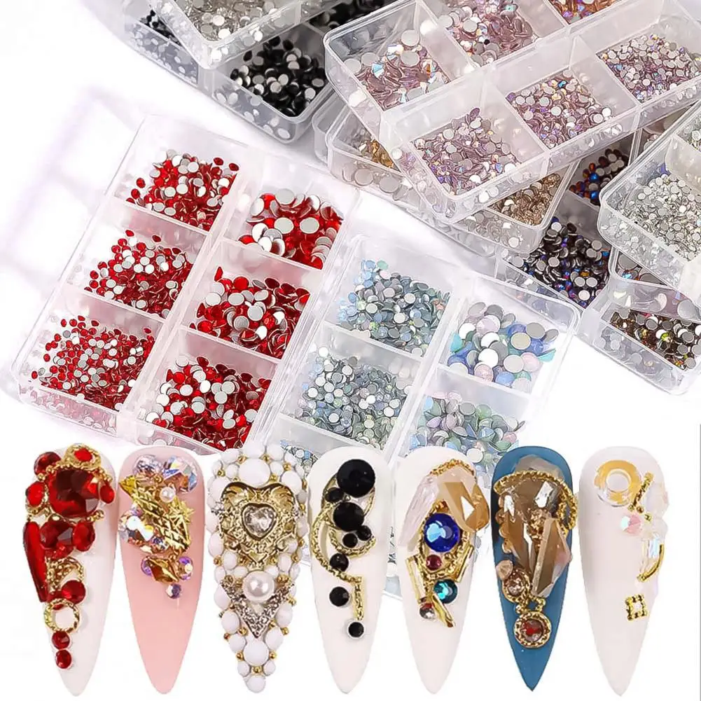 6 ячееккоробка Стразы для ногтей с плоским основанием разноцветные разные формы смешанные AB дизайн ногтей блестящие кристаллы Дизайн ногтей украшение для маникюра