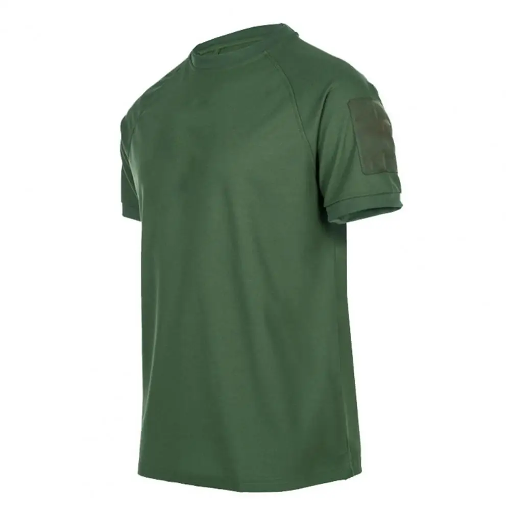 Летняя однотонная быстросохнущая футболка в стиле милитари с коротким рукавом и круглым вырезом
