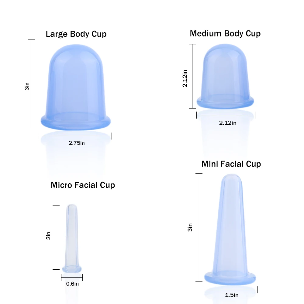 Большие медицинские банки для терапии тела чашки: 70x80 мм (диаметр * высота)Обычные медицинские банки для терапии тела чашки: 55x55 мм (диаметр * высота)Вакуумный массаж для лица чашка: 37x80 мм (диаметр * высота)Чаша для придания формы глазам: 15x50 мм (диаметр * высота)