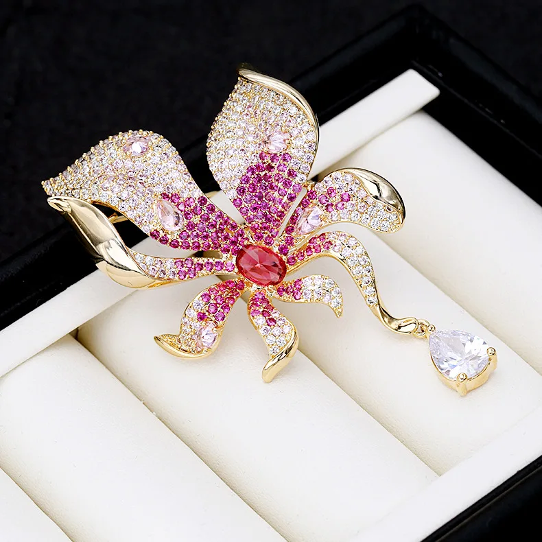 S925 Серебряные иглы, модные ювелирные изделия, высокое качество преувеличенный цвет циркония инкрустация, Очаровательная Женская брошь цветок