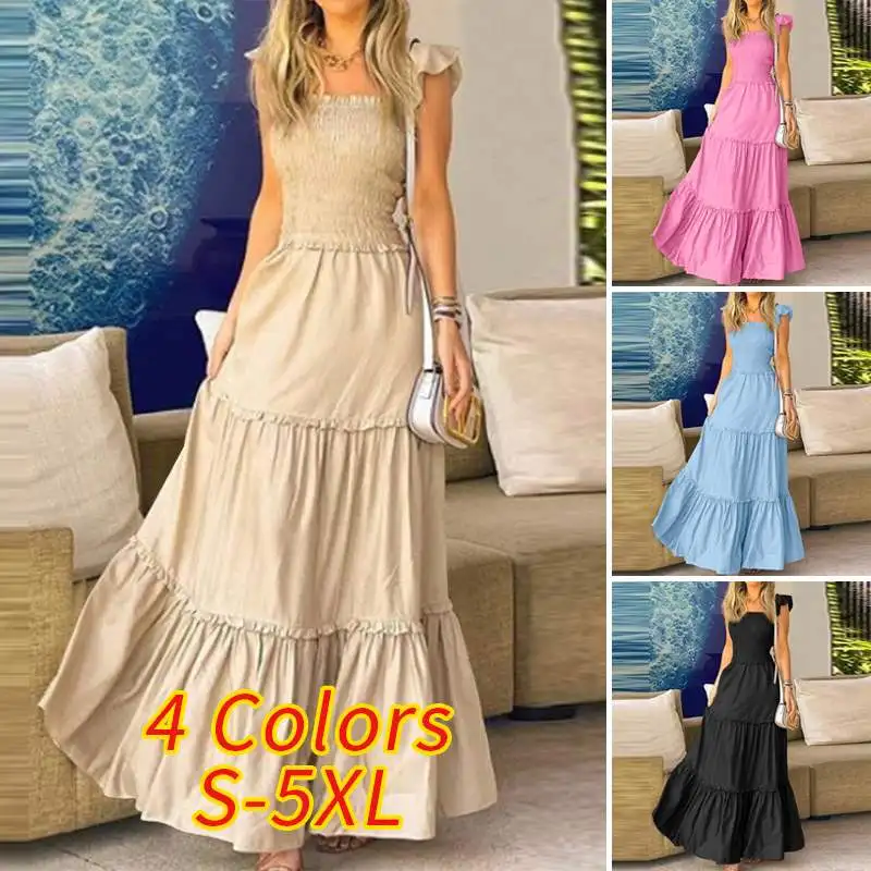 Женский летний сарафан, винтажные однотонные Асимметричные Длинные ...