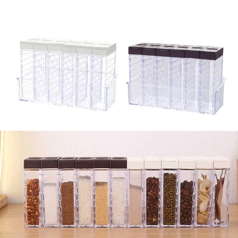 6 шт.компл. мельница для соли и перца специй коробка Пластик прозрачный контейнер для приправ контейнер для хранения с крышкой для кемпинга