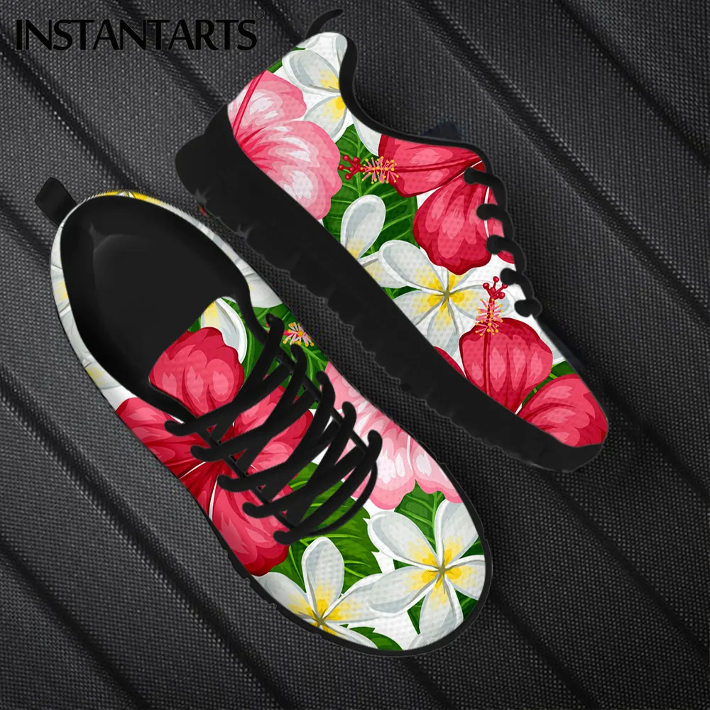 Женские кроссовки INSTANTARTS на шнуровке, симпатичные туфли на плоской подошве с принтом гибискуса и плюмерии, удобная обувь для девочек