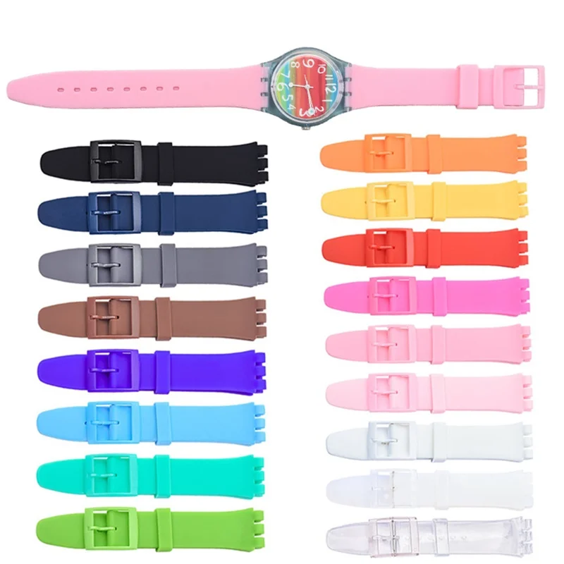 Ремешок силиконовый для спортивных часов Swatch, резиновый цветной браслет для девушек и женщин, аксессуары для наручных часов, 12 мм, 16 мм, 17 мм, 19 мм, 20 мм