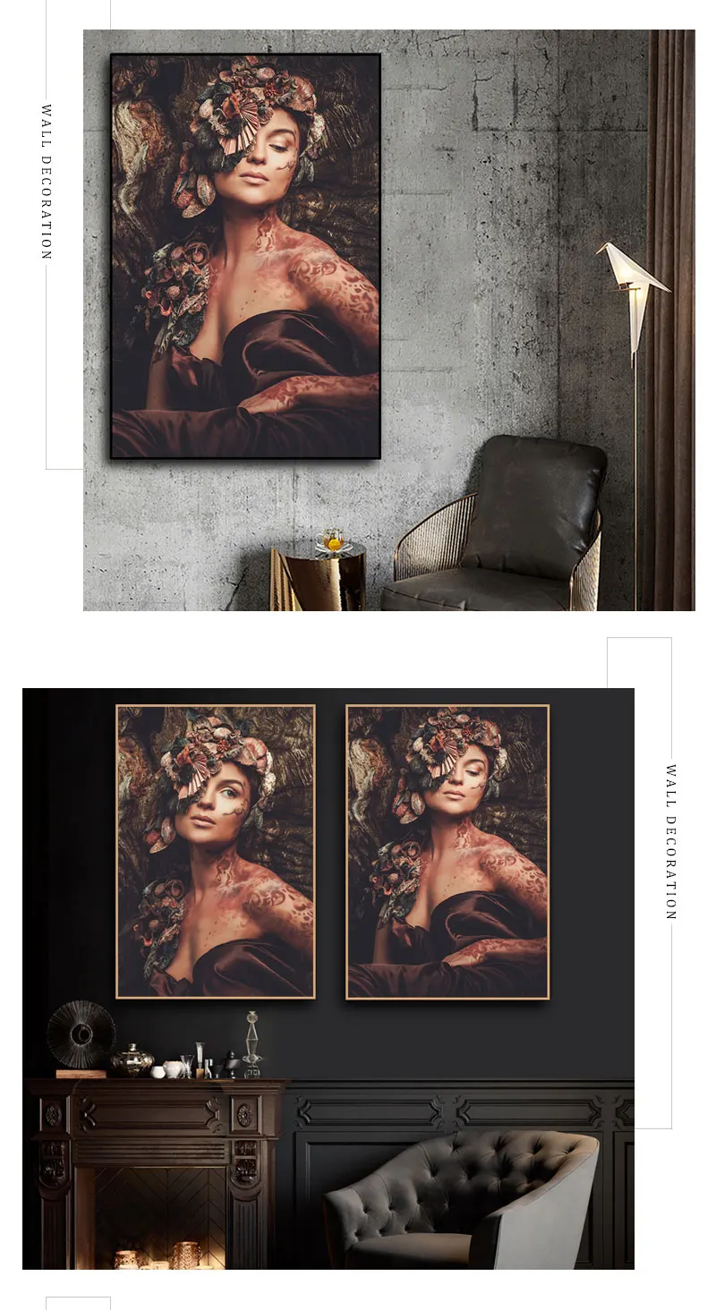 Винтажные деревянные цветы, женские художественные плакаты и принты на заказ, абстрактная модная фигурка, настенные картины, картина для гостиной
