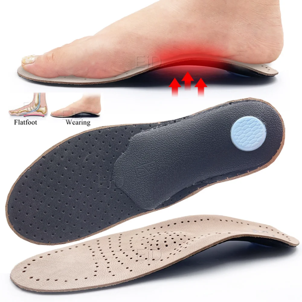 Ортопедические стельки для плоскостопия, из натуральной кожи, для мужчин и женщин