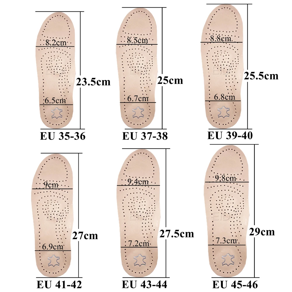 Описание продукта:Специально разработан для низкого свода и плоскостопияПомогает контролировать, стабилизировать и сбалансировать стопуУменьшает трение для улучшения общего комфорта стопыВерхняя крышка впитывает пот и моется.Мягкий и удобный материал из натуральной кожиПревосходный комфорт и мягкость. Для прохладной и расслабленной ходьбы2,5 см супинаторУменьшает боль в пятке, лодыжке и спинеPUC супинатор, латексный массаж ногСнимает боль в пятке и Арке.Материал стельки: натуральная кожа/PUC/латексИз-за хрупкости латекса, каждый слой с адгезией клея, пожалуйста, не рвутся легко. В противном случае его легко сломать.Размер:Сезон осень; Европейские размеры 35-36 длина около 23,5 смЕвропейский размер 37-38 длина около 25 смЕвропейские размеры с 39 по 40 Длина Около 25,5 смEU 41-42, длина около 27 смЕвро 43-44 длина около 27,5 смЕС, а также от 45 до 46 Длина около 29 смСтелька может быть немного подстрочена, чтобы соответствовать вашему размеру.Примечание:1. Из-за разницы между различными мониторами, изображение может не отражать фактический цвет изделия. Мы гарантируем, что стиль такой же, как показано на фотографиях, но не такой же, как на модели.2. Замеры сделаны вручную, поэтому возможны отклонения на 0,5 см.
