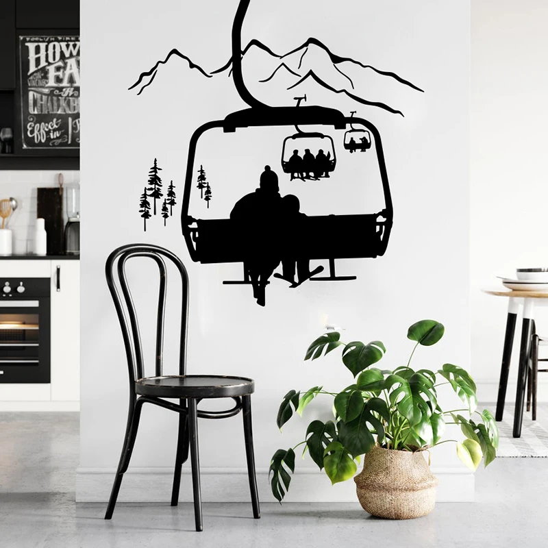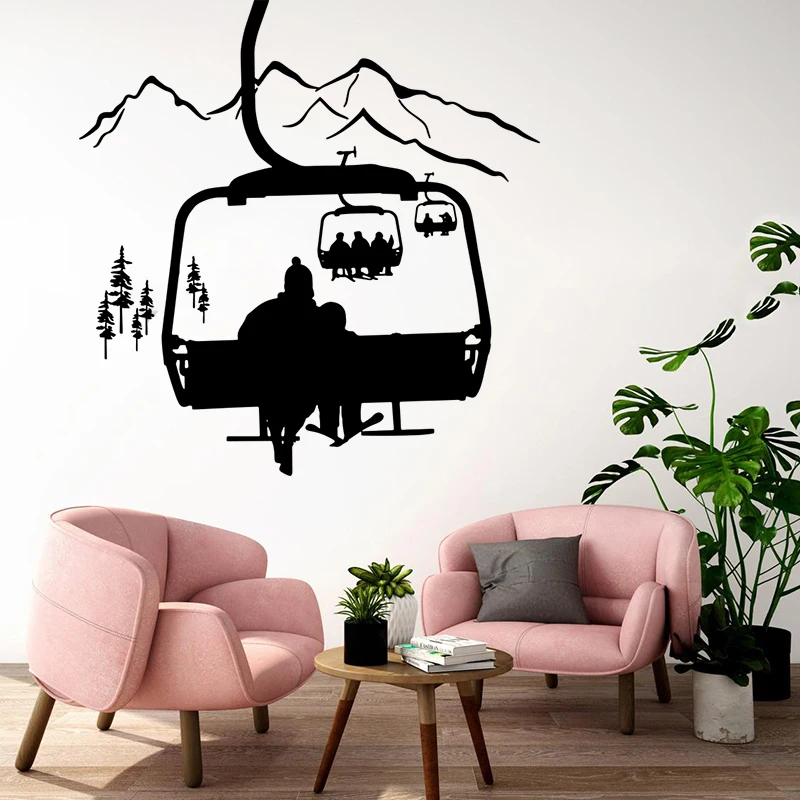 ThemeLarge Ski Telpher Mountain Wall Sticker Bedroom
