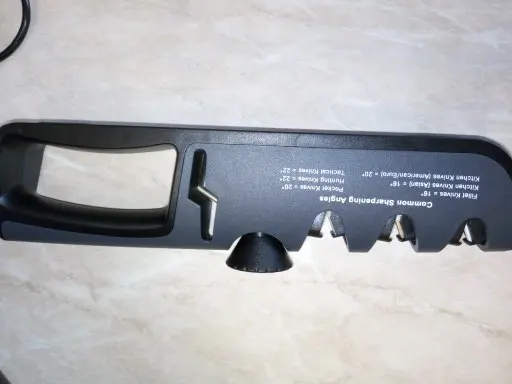 Этот продукт выглядит очень экономически эффективным. Я решили заказать его, потому что он имеет различные настройки в зависимости от типа ножа, который вы используете. Должен сказать, что удивлен. На самом деле, это дает вашему ножу хороший край. Я рекомендую этот продукт всем, кто использует много ножей. Это очень удобно и хороший быстрый ресурс для заточки ножей.