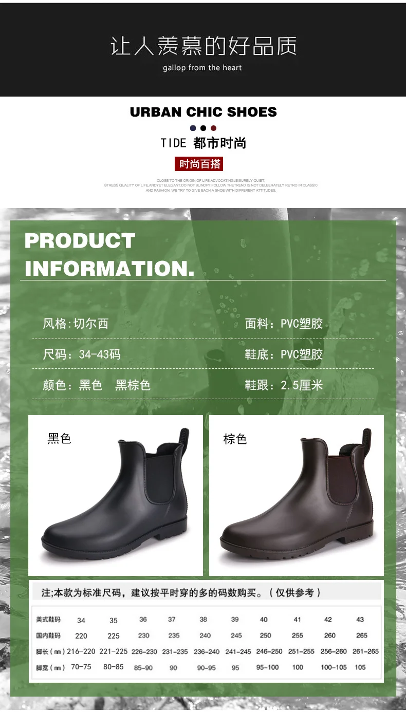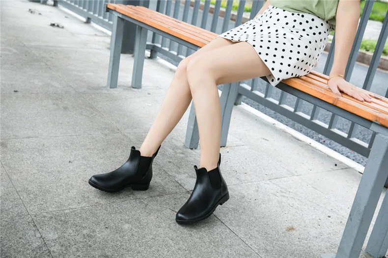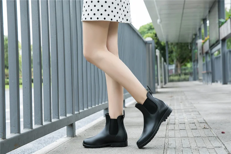 Женские модные короткие резиновые туфли, всесезонные эластичные полуботинки мартинсы для девушек, универсальная водонепроницаемая обувь, Нескользящие резиновые сапоги