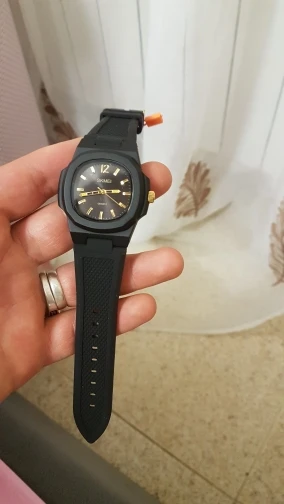 материал корпуса очень твердый и при сильном нажатии очень упругий пластик. стекло - пластик. механизм имеет люфт минутной стрелки примерно на одну минуту при выдвинутой заводной головке. стрелки не светятся совсем (ни кто и не обещал, просто факт). ремешок - очень мягкий полиуретан. застежка ремешка - нержавейка. задняя крышка прикручена очень аккуратно. часы в принципе хорошие. дизайн - на любителя. своих денег стоят.