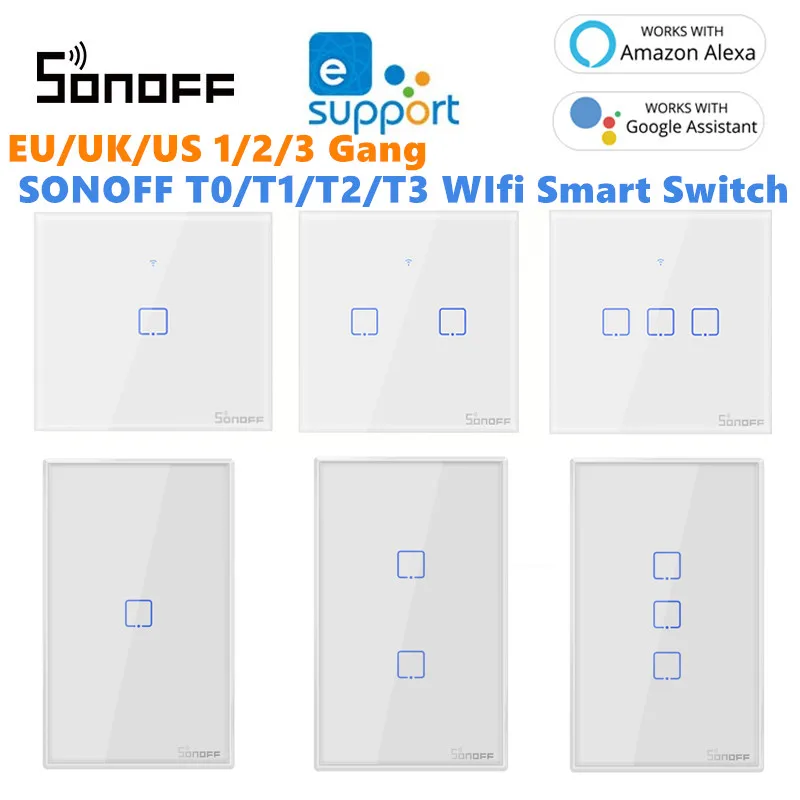 Интеллектуальный выключатель света Sonoff T1 T2 T3 совместим с Google Home, Alexa умный дом Wi-Fi RF пульт дистанционного управления Управление настенный светильник переключатель Панель настенный сенсорный светильник переключатель