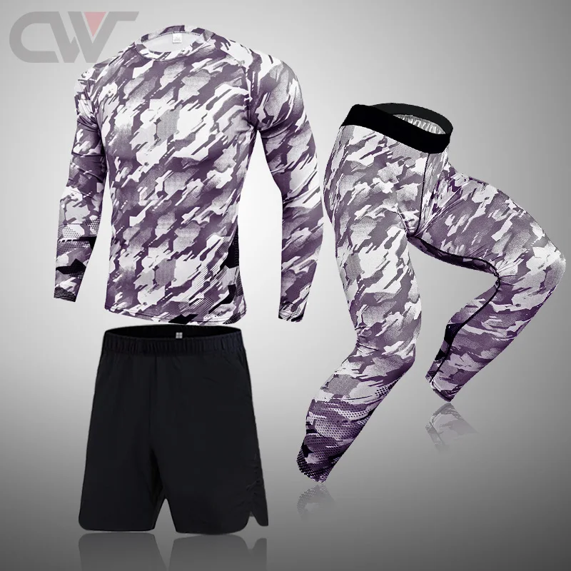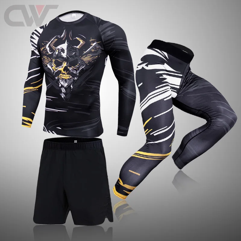 Мужские Компрессионные спортивные костюмы 3 шт.компл., тренировочная одежда для тренажерного зала, тренировочный спортивный комплект для бега, спортивный костюм для бега, колготки