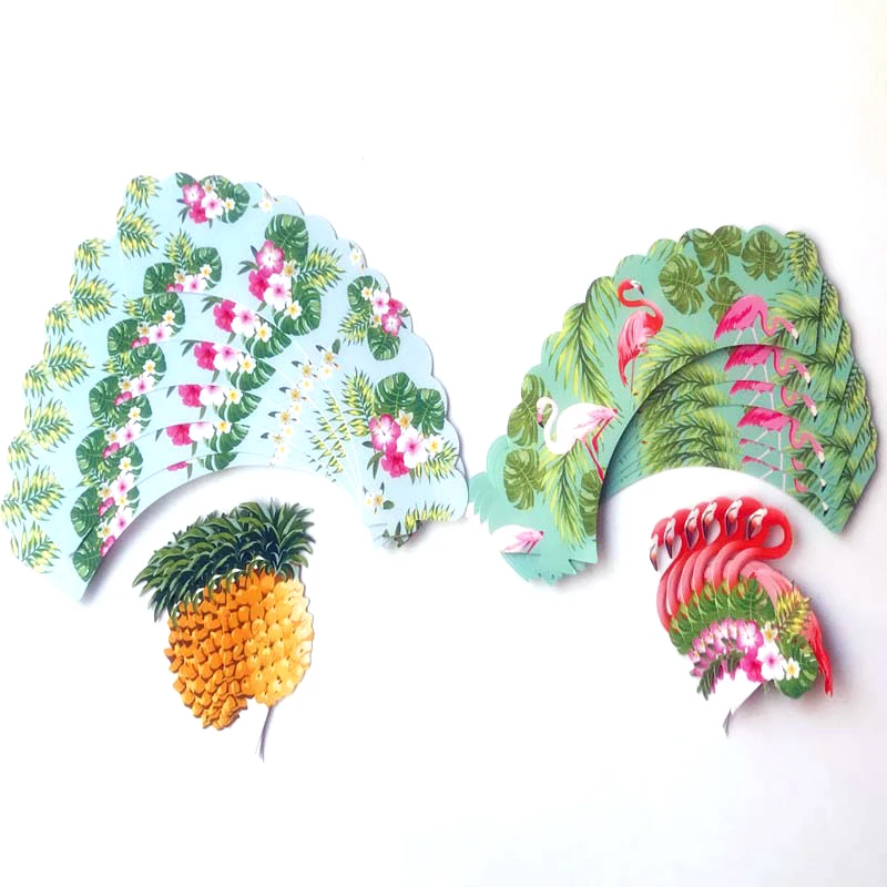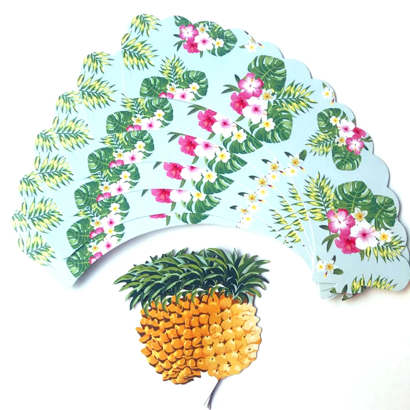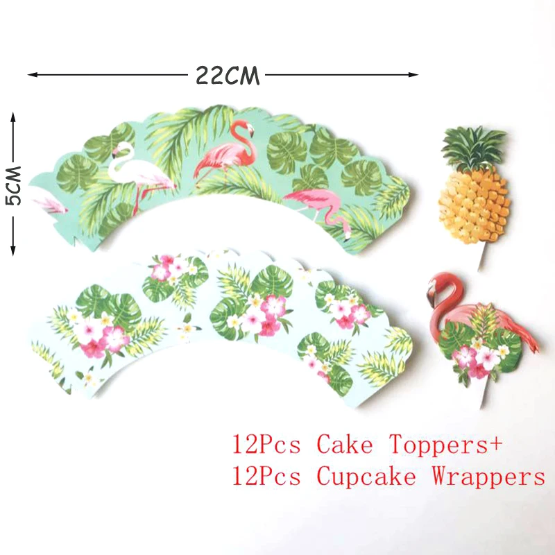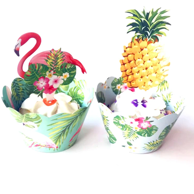 24 шт., обертка для торта в виде тропического фламинго, ананаса, капкейка, топпер для летнего свадебного торта, украшение для торта на день рождения