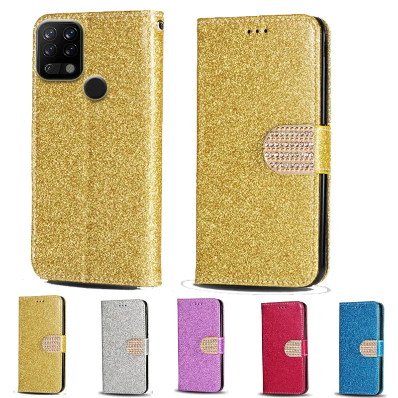 Роскошный кожаный флип-кошелек с блестками для Realme C11 2021, чех...