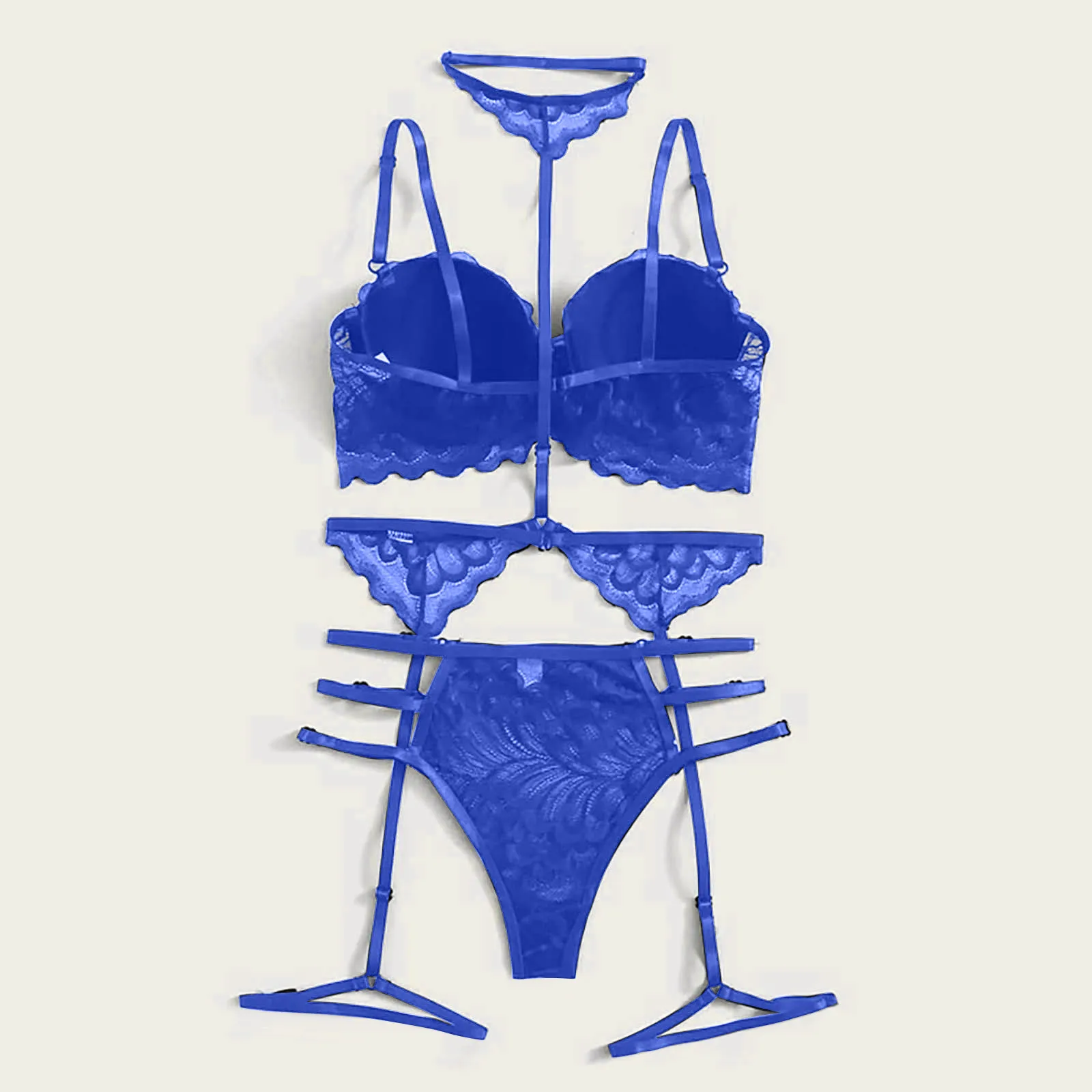 Синее чувственное женское белье, комплект нижнего белья, нижнее бел...