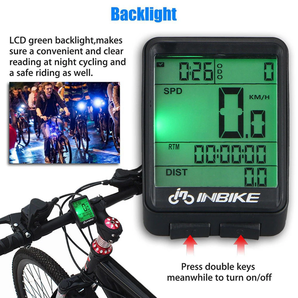 Велосипедный компьютер INBIKE, беспроводной и проводной секундомер, одометр, спидометр, Многофункциональный светодиодный фонарь