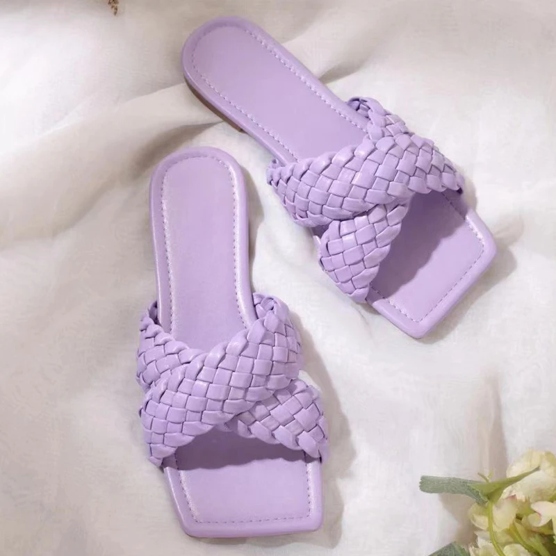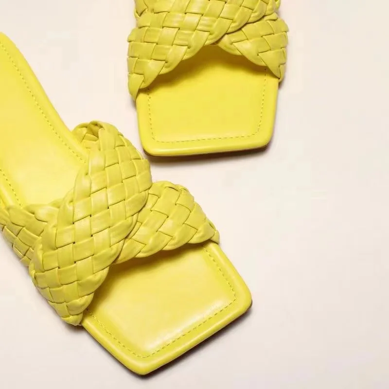 Сандалии женские с квадратным носком, Уличная Повседневная обувь, плоская подошва, плетеные, большие размеры, лето 2021