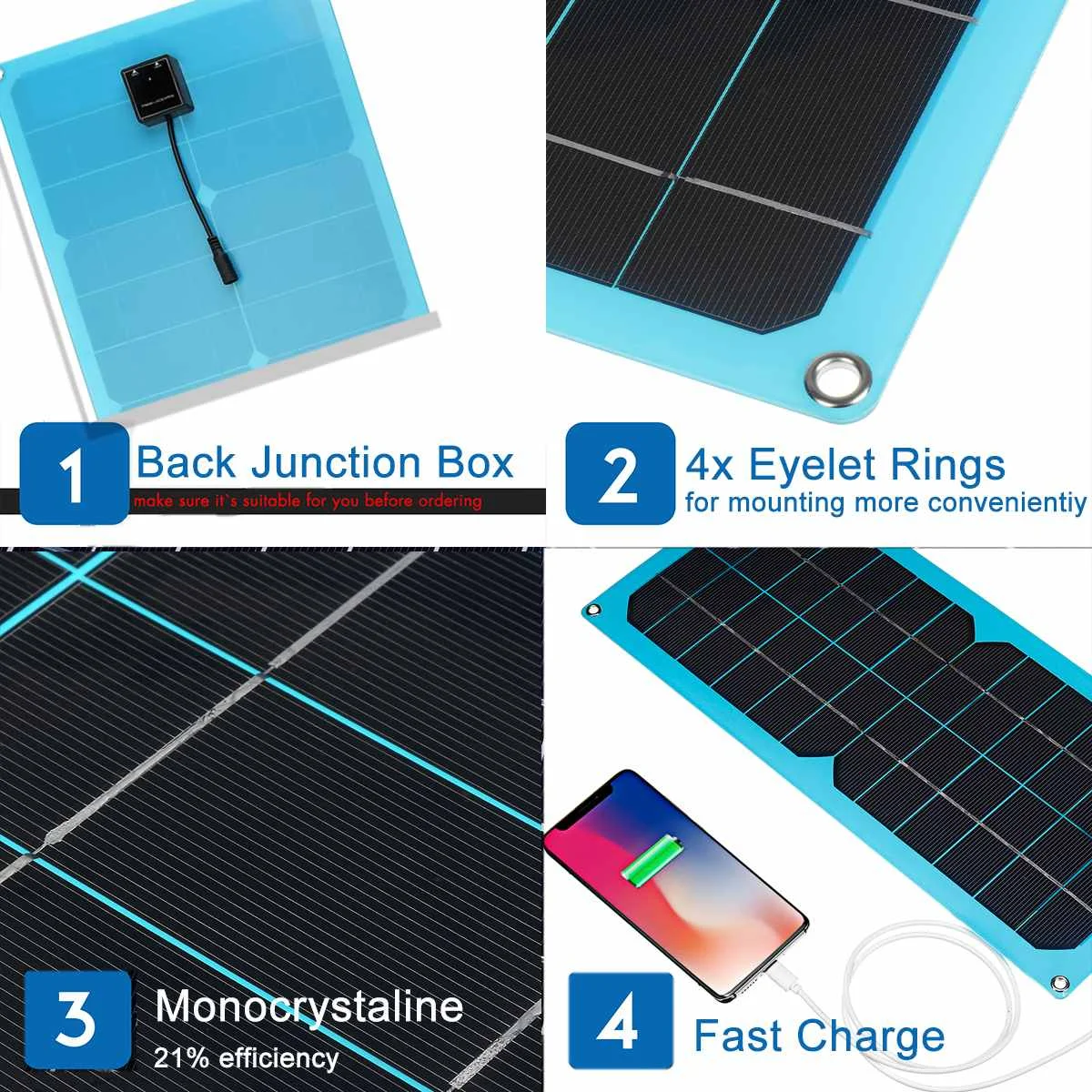 100W с 30A контроллер Панели солнечные 18V гибкие солнечные элементы для автомобиля корабля яхта Батарея Зарядное устройство крыши дома Кемпинг Водонепроницаемый