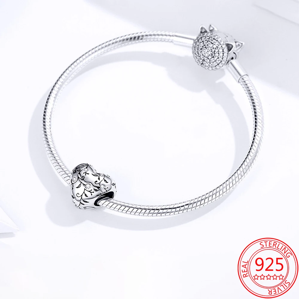 Женский серебряный Ретро цветочный узор в форме сердца маленькие бусины очаровательные цветы подходят для браслета Пандора Подвеска Сделай Сам
