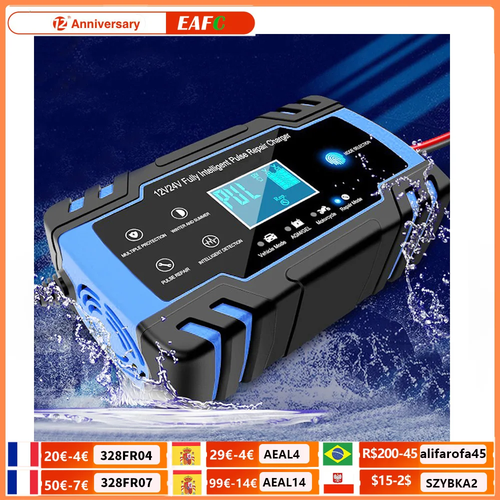 Зарядное устройство EAFC для автомобильного аккумулятора в с ЖК-дисплеем