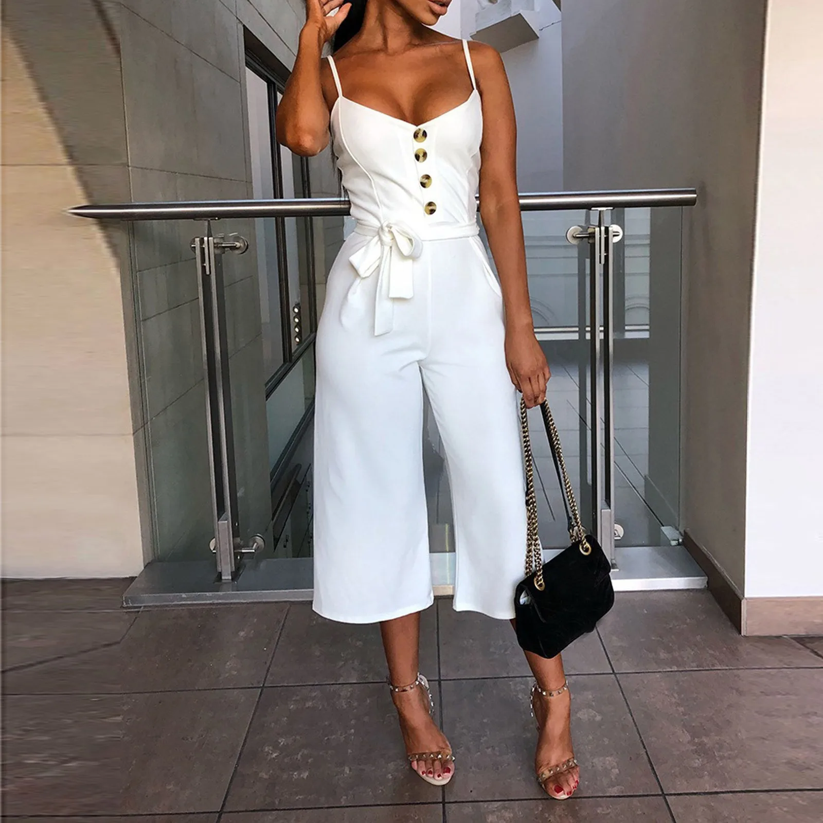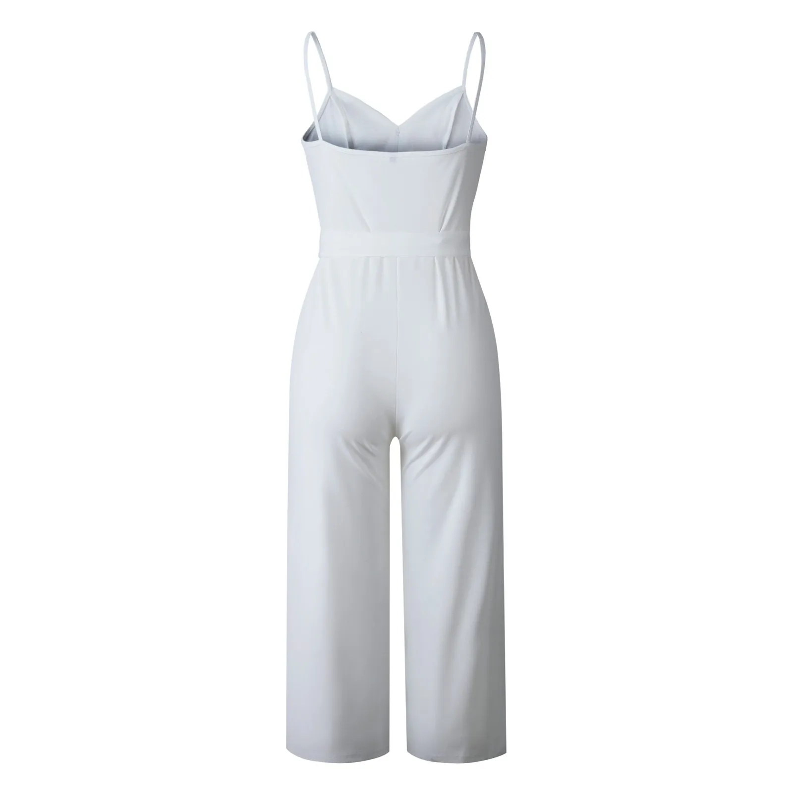 Женский комбинезон на бретельках, длинный однотонный комбинезон, сексуальный цельный комбинезон с открытой спиной, широкие брюки, комбинезоны, комбинезоны