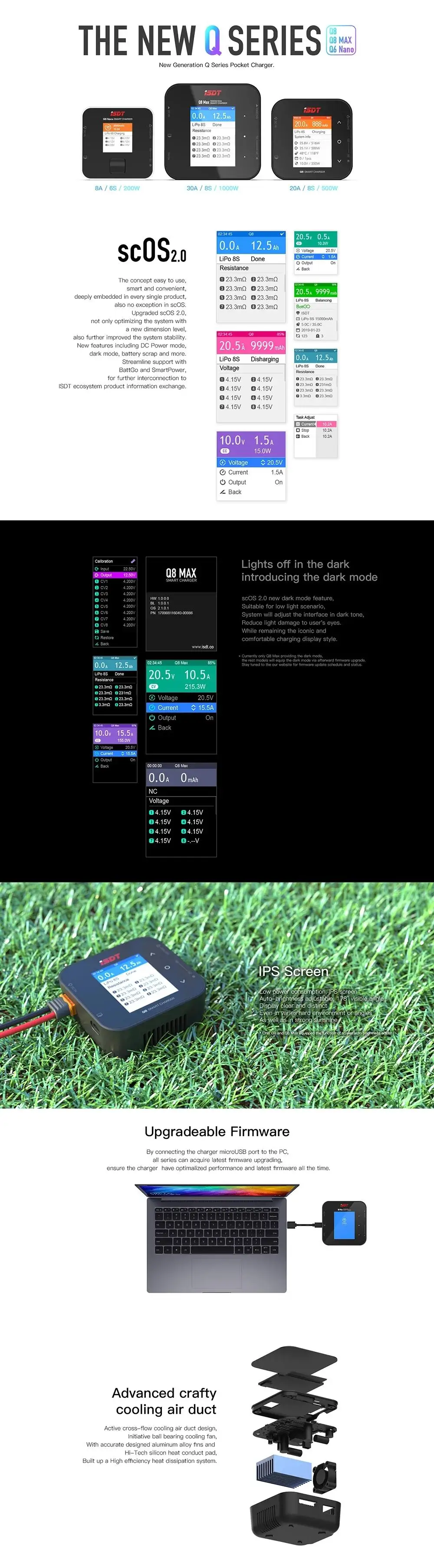 ISDT Q8 BattGo 500W 20AQ8 MAX 1000W 30A высокомощный аккумулятор ба...