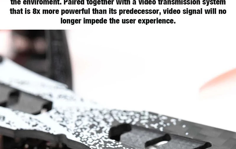 Улучшенное видео:Перепроектировав рамку, чтобы принять камеру высокого качества, улучшен опыт FPV, что позволяет находить ясность при навигации по окружающей среде. В сочетании с системой передачи видео, которая на 8х мощнее, чем ее предыдущий, Видеосигнал больше не будет мешать пользовательскому опыту.