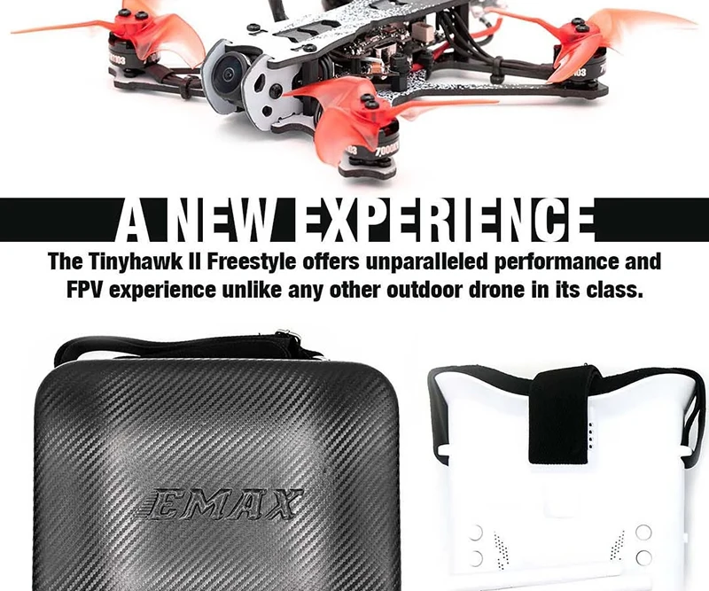 Посылка в комплекте с версией RTF:1 x Tinyhawk II Фристайл 2,5 дюймов небольшой гоночный Дрон с видом от первого лицаРадиоуправление-1 шт.1 x очки2 батареи Emax 1s HV 450 mAhЗарядное устройство-1 шт.1 комплект пропеллеров (4x CW, 4x CCW)1 х Винтовая упаковка1 x Руководство пользователя веб-сайт карта1 кабель для зарядки Micro USB1 x чехол для переноски из искусственного углеродного волокна
