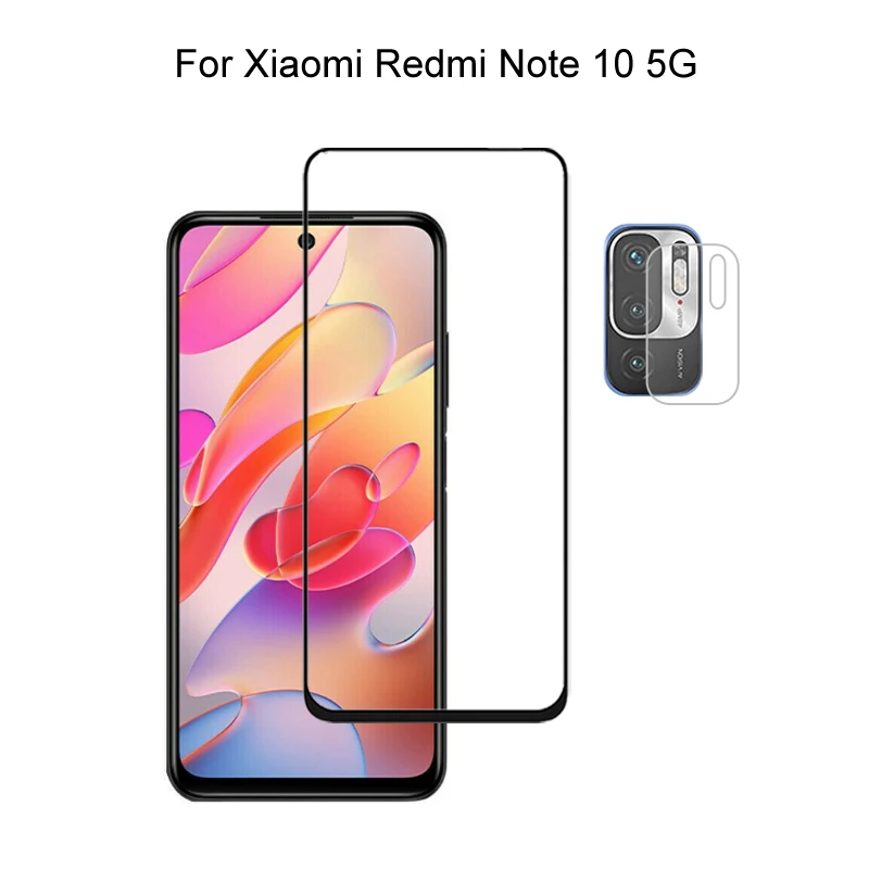 Защитная пленка для экрана Xiaomi Redmi Note 10 5G, закаленное стекло с полным покрытием, Взрывозащищенная и пленка для объектива камеры