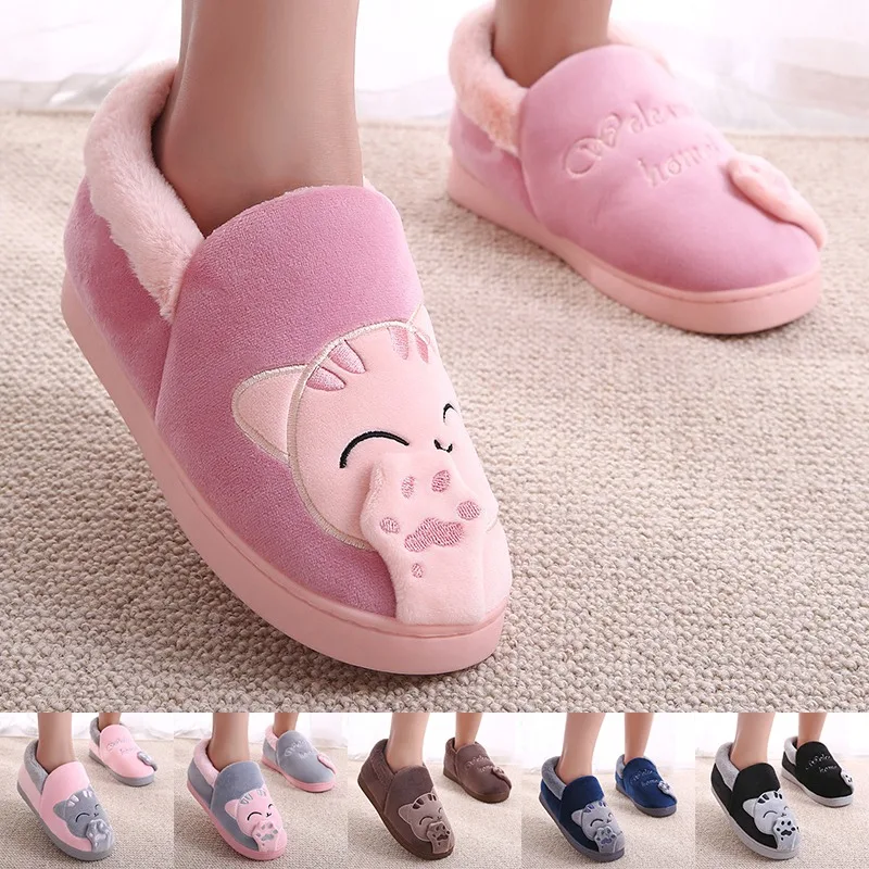Зимние женские домашние тапочки с мультяшным котом, Нескользящие мя...