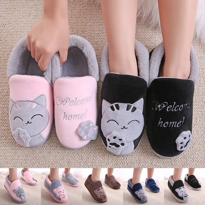 Зимние домашние тапочки с мультяшным котом, Женская Нескользящая те...