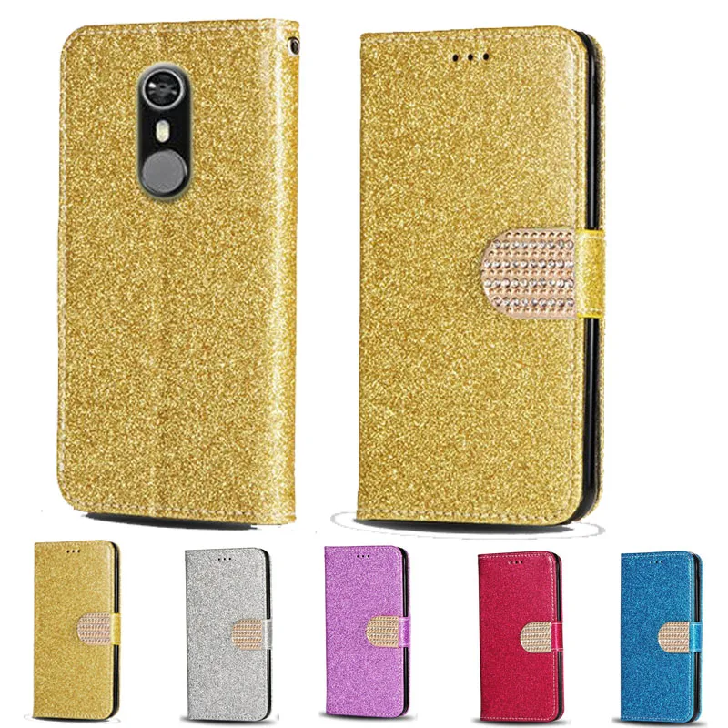 Блестящий Алмазный откидной кожаный чехол-бумажник для телефона Son...