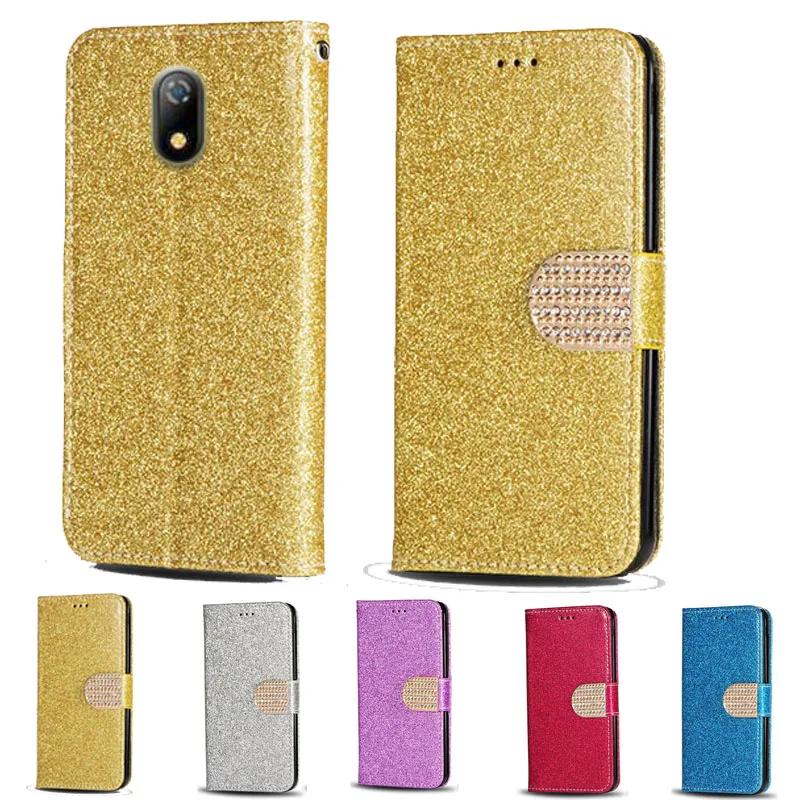 Чехол-книжка для itel A16 Plus, кожаный, с отделением для карт, с блестками и бриллиантами, чехол для телефона