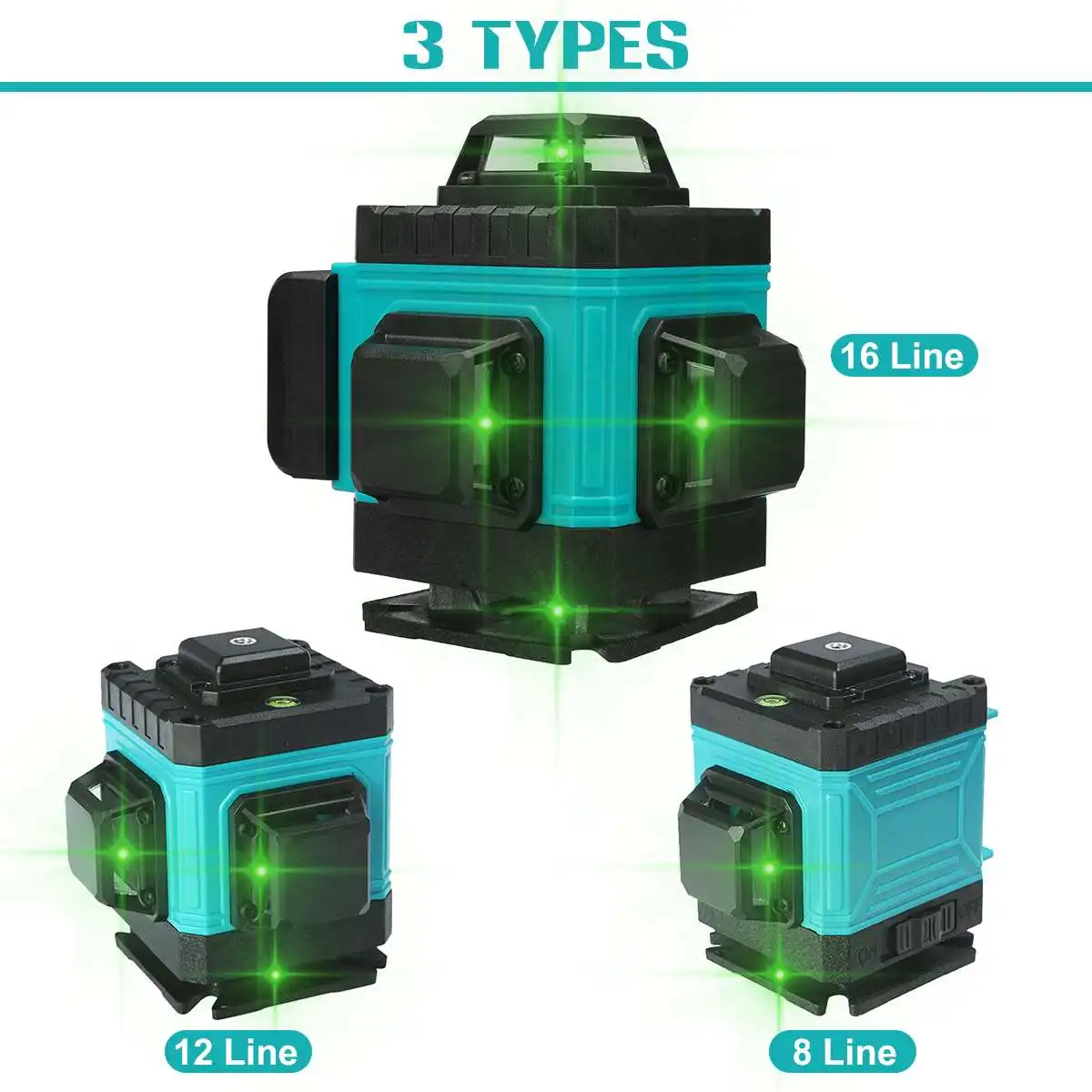 Лазерный уровень 3D4D, 1216 линий, самонивелирующийся, 360 линий, горизонтальный зеленый лазерный луч, горизонтальные, вертикальные, перекрестные линии в помещении