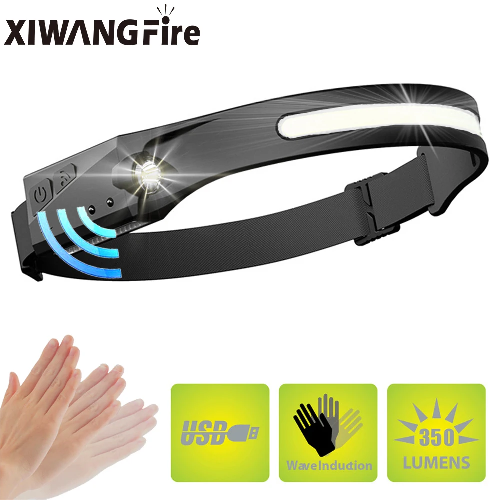 Индукционный налобный фонарь в новом стиле, силиконовый COB Светодиодный фонарь со встроенным аккумулятором, зарядка через USB, налобный фонарь