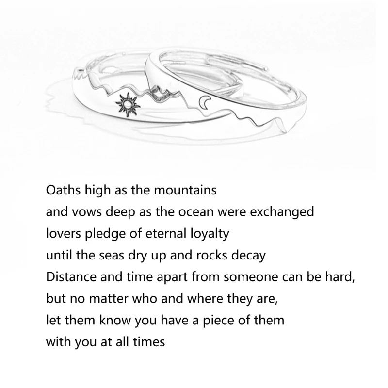 Особенности:Означает, что украшения для пар: Эти парные подходящие кольца отлично подходят для вашей любви в качестве подарка на День святого Валентина, юбилея, рождественского подарка, новогоднего подарка, подарка на день рождения и т. д., можно носить на свадьбу, помолвка, свидание, предложение и повседневная жизнь.Надежный материал: парные кольца изготовлены из качественной меди, прочные и прочные, не выцветают и не ломаются, безопасны и удобны в носке, будут служить вам в течение длительного времени.Шикарный Дизайн: регулируемый дизайн с хорошим качеством изготовления, дизайн с Луной и солнцем, подходящие Регулируемые кольца для пар могут стать хорошим выбором для ваших друзей, девушки или парня, полностью показывает свои чувства и любовь к нему или ей.Хорошо упаковано: набор парных подходящих колец упакован в элегантную маленькую коробку, поэтому вам не нужно беспокоиться о повреждении во время транспортировки.Посылка входит:1 пара колец